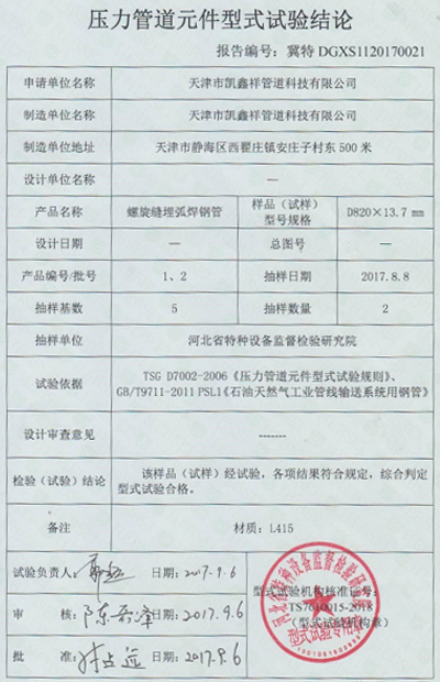 特種設備型式試驗報告